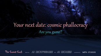 "The Comet Cock. A Murderous AI Dating Sim" is jam-packed with AI-generated dickstrosities just begging to conquer your heart. Will you dare turn your eyes away? And if you do, who will take responsibility for this statistically average view of masculinity?